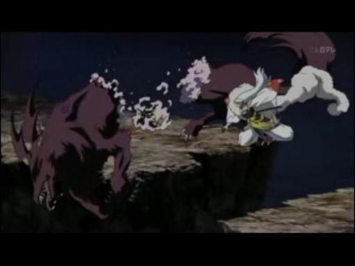 殺生丸用冥道殘月破攻擊那隻狗...